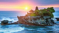 - Đền Tanah Lot – được xây dựng từ thế kỷ 16, nằm trên mỏm đá cheo leo đầm mình trong sóng biển hàng trăm năm, là một trong bảy ngôi đền nổi tiếng bên bờ biển Bali. Được xây dựng bởi một thầy tu người Java, đền Tanah Lot ngự trị trên đỉnh một khối đá khổng lồ, bốn bề là nước xanh thẳm. Người dân Bali cũng tin rằng các loài rắn độc trú ngụ quanh khối đá là để bảo vệ nơi linh thiêng này khỏi những linh hồn ma quỷ.