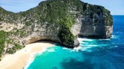 - Tham quan Kelingking Beach – “Sống lưng khủng long” nổi tiếng trên các trang mạng xã hội hay còn gọi là “bãi biển T-Rex” nó có hình dạng giống như đầu khủng long bạo chúa T- Rex bởi mỏm núi đá vôi nhô ra ngoài.